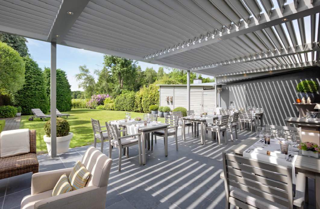 Alábbi cikkünk a teljesség igénye nélkül mutatja be azokat a lehetőségeket, melyeket egy vendéglátóhely a vendégei tökéletes kényelme érdekében egy pergola árnyékolóval létrehozhat. Az esővízelvezető pergolát választó megrendelőink a megfelelő kiegészítőkkel kombinálva komplett, kora tavasztól késő őszig használható vendéglátóhelyet alakíthatnak ki akár a kertben is.