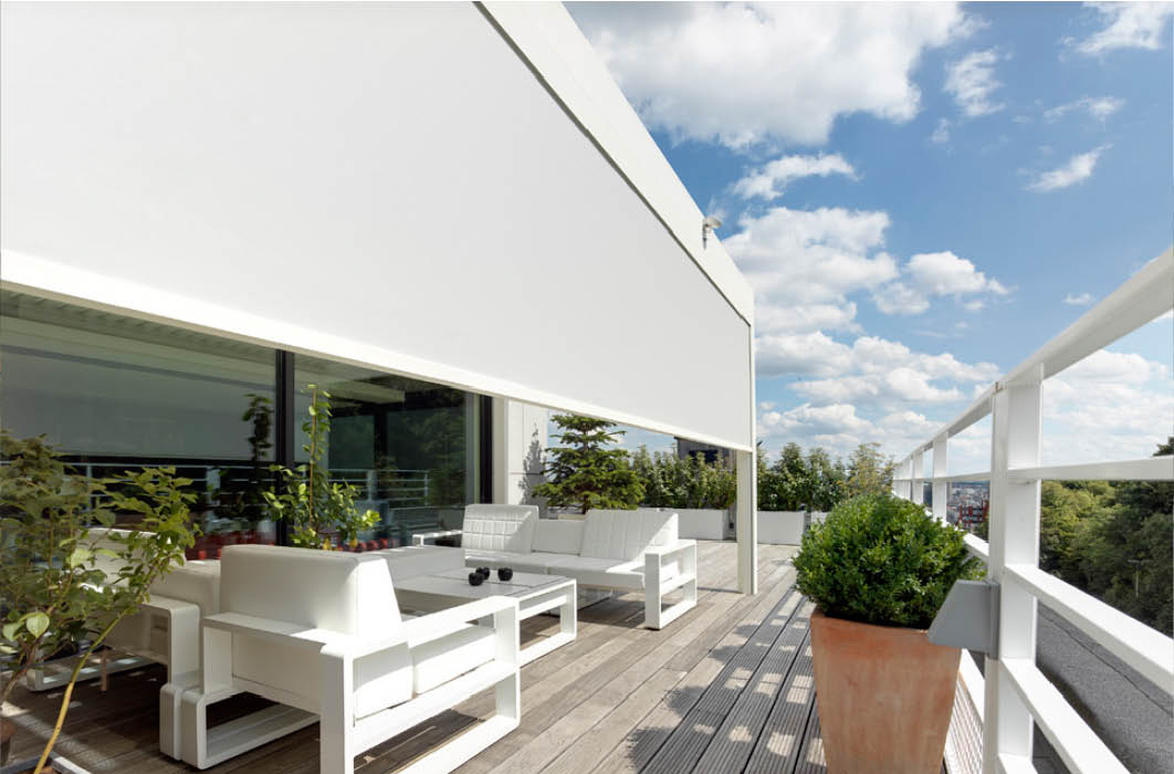 A késő délutáni alacsony napállásnál is megoldást jelenthet az oldalfalakba integrált ZIP roló, mely akár 6 méter szélességig képes árnyékot szolgáltatni a vendégeknek, továbbá a kíváncsi tekintetek elől is megvédi a zártkörű eseményeket.