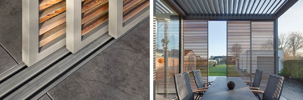Korábban már bemutattunk néhány teraszárnyékoló megoldást, mely szükség esetén a vízelvezetést is képes megoldani. A napernyők speciális kiegészítőkkel szerelten, a napvitorlák víztaszító textilekkel kombinálva, a megfelelő lejtéssel kialakítva jó megoldásnak tűnnek. A textil teraszárnyékolókkal szemben azonban a masszívabb és architektonikusabb megjelenésű, extra kiegészítőkkel kombinált pergolák fokozottabb védelmet nyújtanak esőben és szélben is.