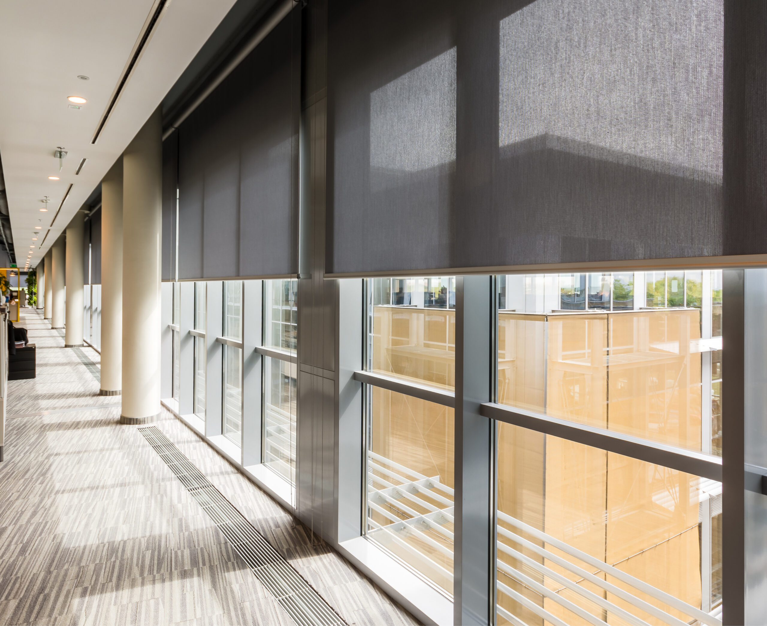 Belső téri textil roló burkolattal / burkolat nélkül, sodronyos / sínes megvezetéssel / megvezetés nélkül kézi / motoros mozgatással nagy méretben