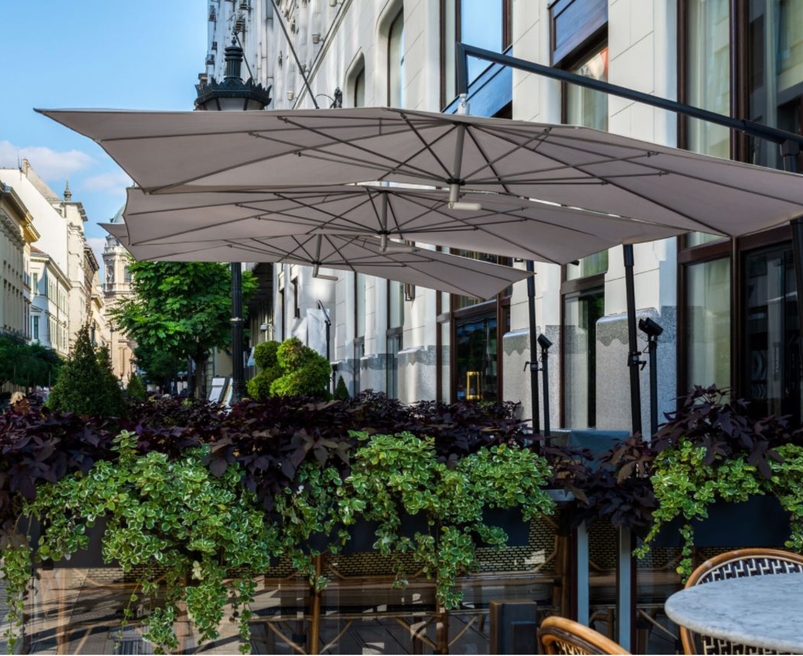Külső tartólábas napernyő, nagy mozgásszabadsággal