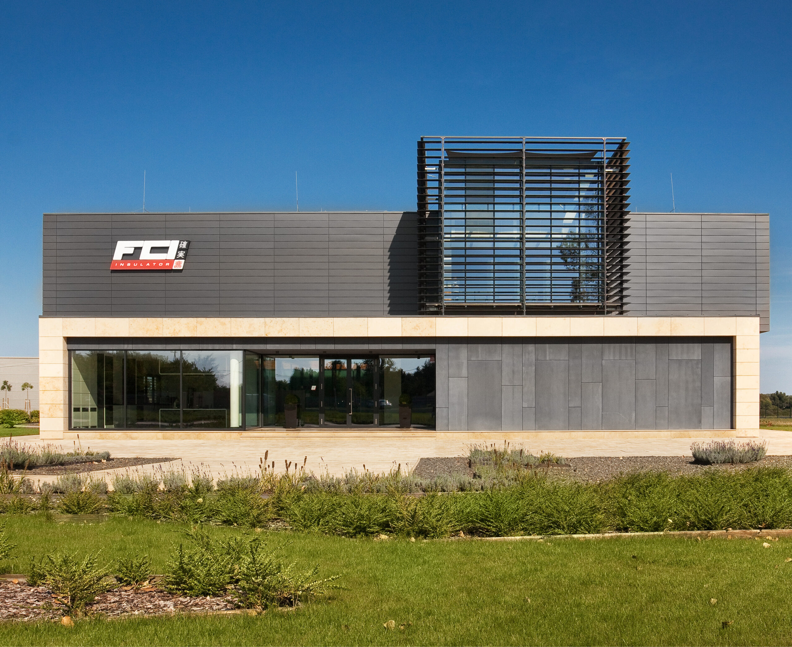 Függőleges síkú nagylamellás szerkezet – repülőgépszárny alakú vízszintes hossztengelyük mentén forgatható alumínium lamellákkal