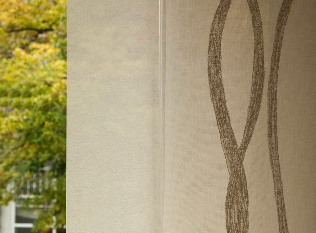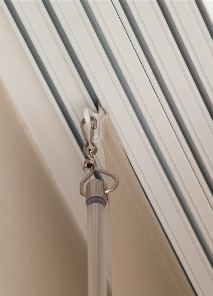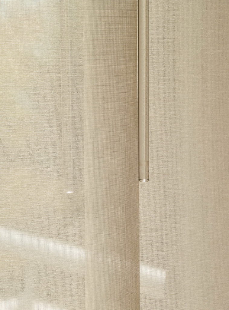 A lapok mozgatását segítő áttetsző plexi pálca szinte észrevétlen marad, ugyanakkor használatával a világos textil eredeti szépsége tovább megőrizhető.