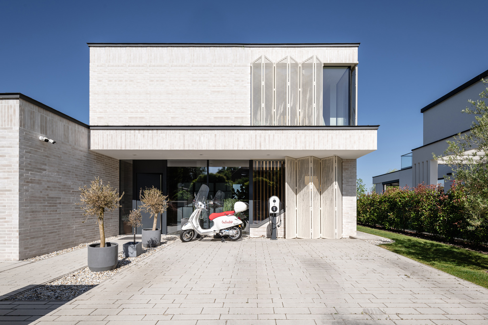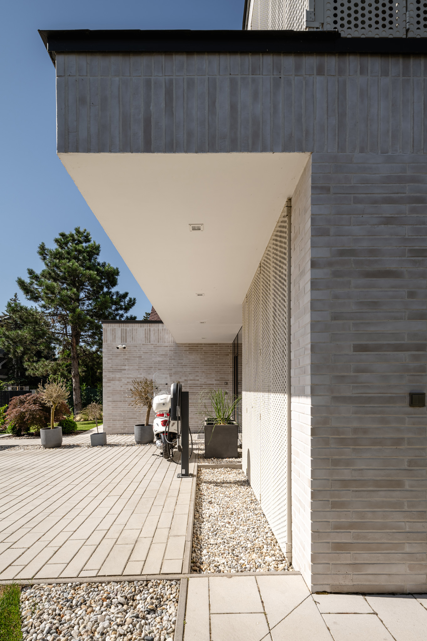 A Balaton-parti villa tervezője jól ismeri a tóparti építészet arányait és léptékeit – legyen szó társasházról vagy kisebb, egyedi villáról. Kompakt mérete ellenére az épület a tudatos térszervezés és a kifinomult arányok példája.